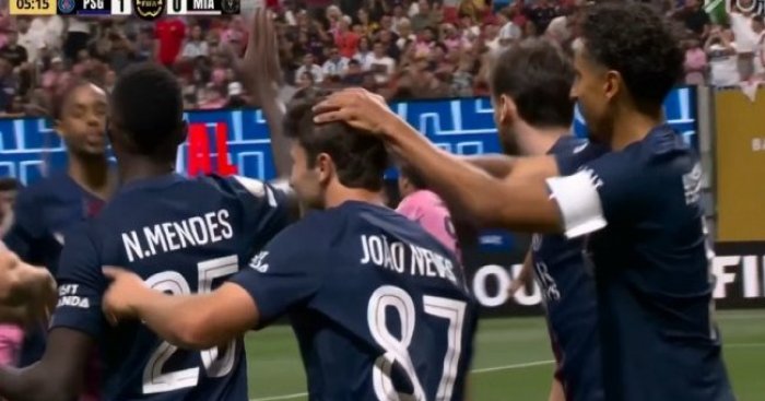 巴黎领先!若奥-内维斯破门,维蒂尼亚助攻!第6分钟,维蒂尼亚主罚任意球开出到后点,若奥-内维斯头球冲顶破门,巴黎圣日耳曼1-0迈阿密国际!↓